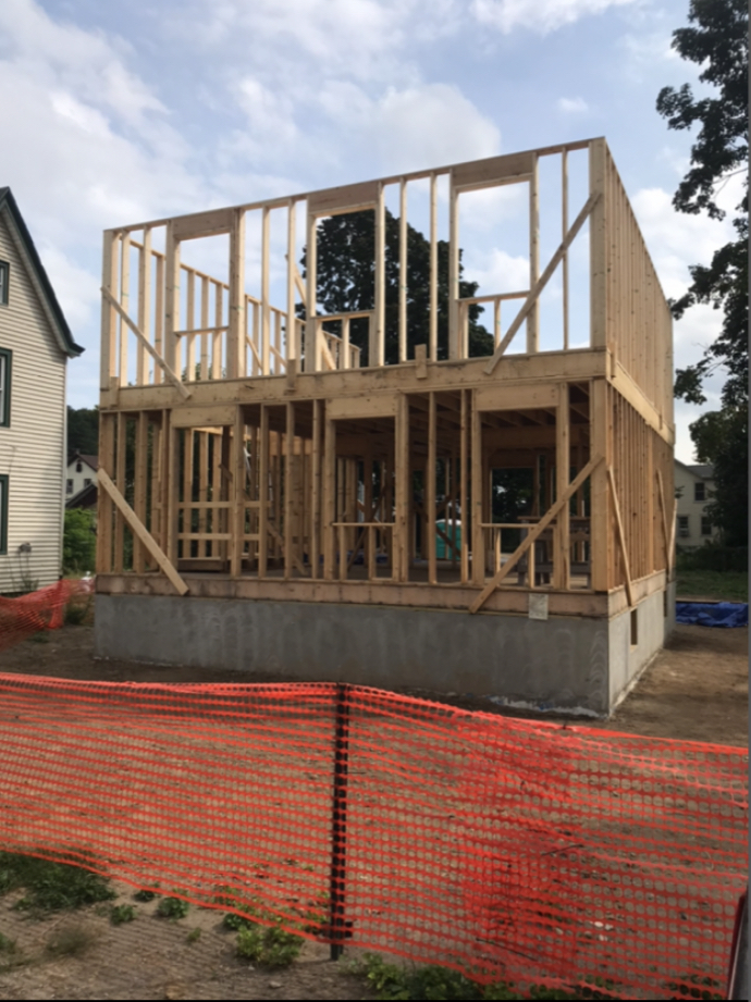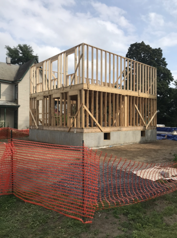 This complete ground up build went from a wooded lot to an energy efficient home for a first time home buyer. Starting with the foundation, the house was constructed using Fox Block ICFs (insulated concrete forms). After the structure was completed, the entire envelope was covered using Zip Systems (Zip-R) with 1’’ foam. The structure is so well insulated it way surpassed standard requirements,leaving the owner with a reduced energy bill.