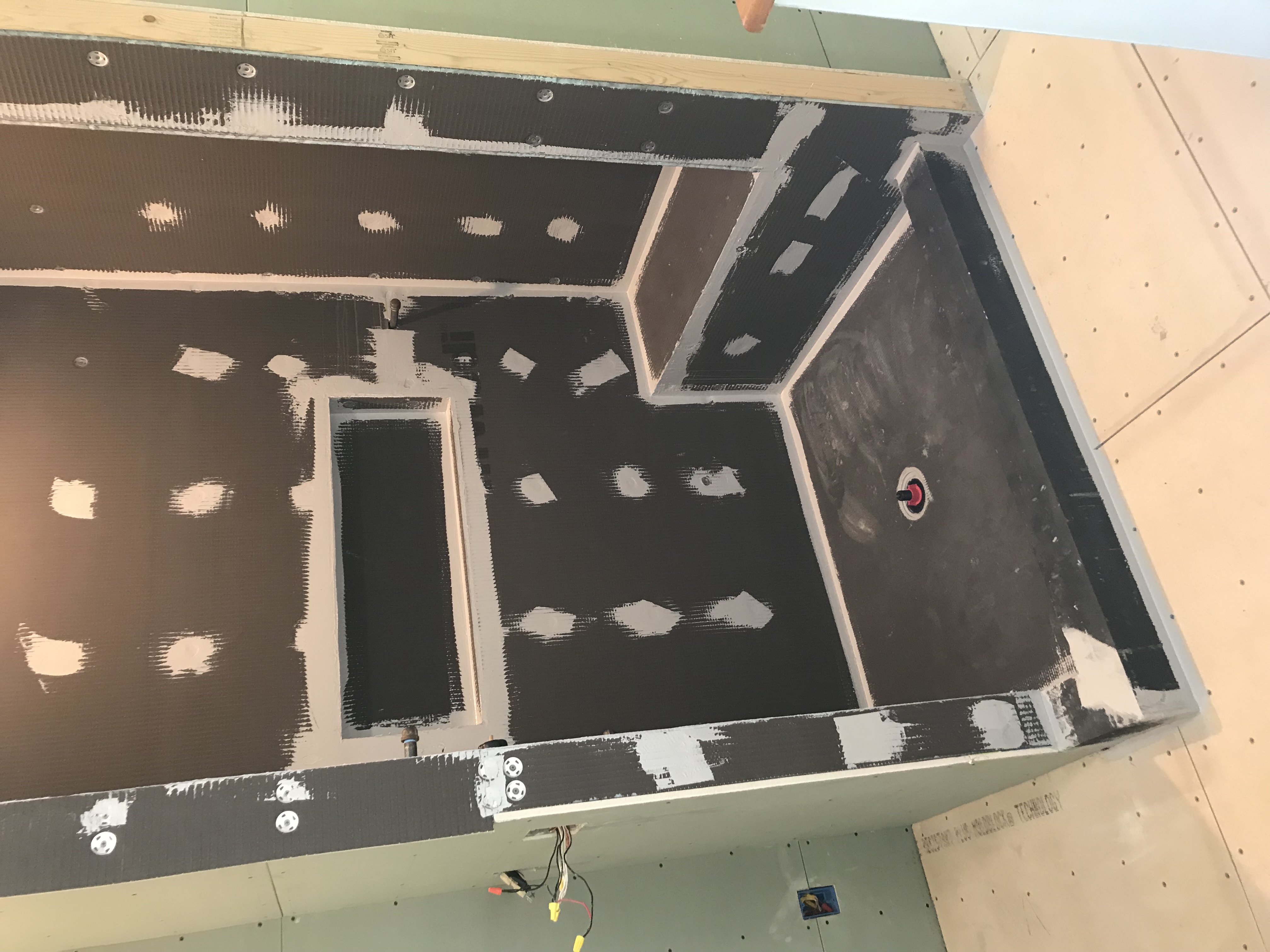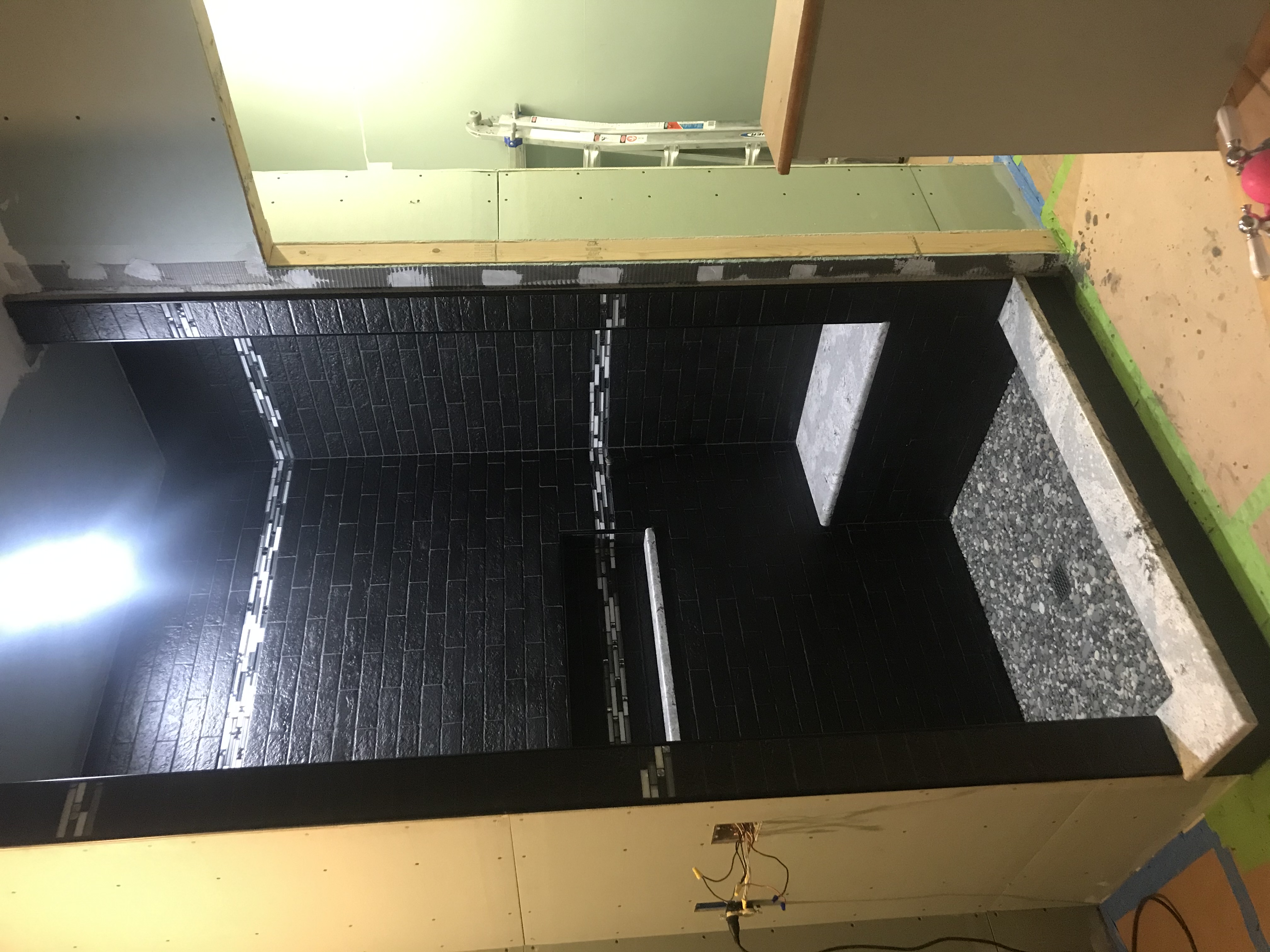 This is a custom shower with seated bench. We installed a pebble floor, built in niche, with rain shower & body jets. This is a shower that you will never want to leave.