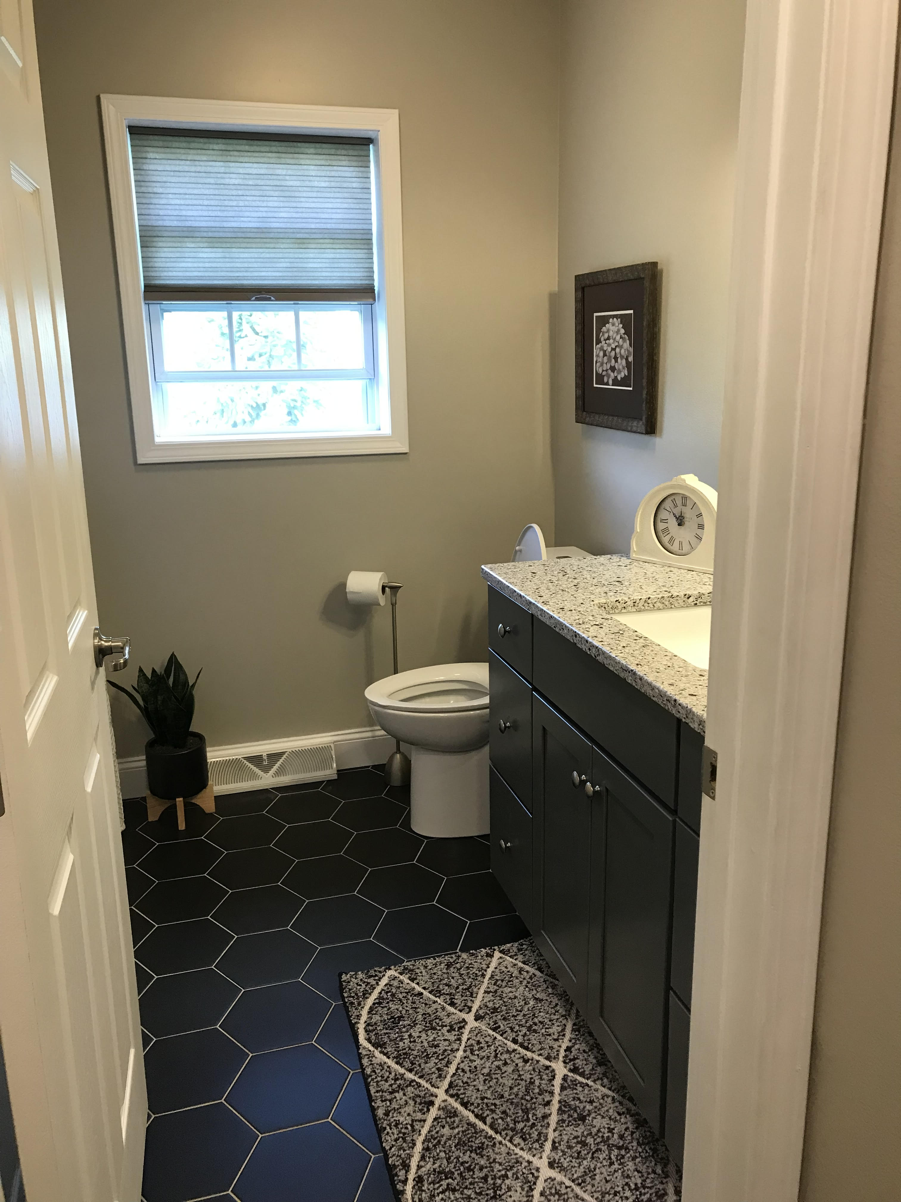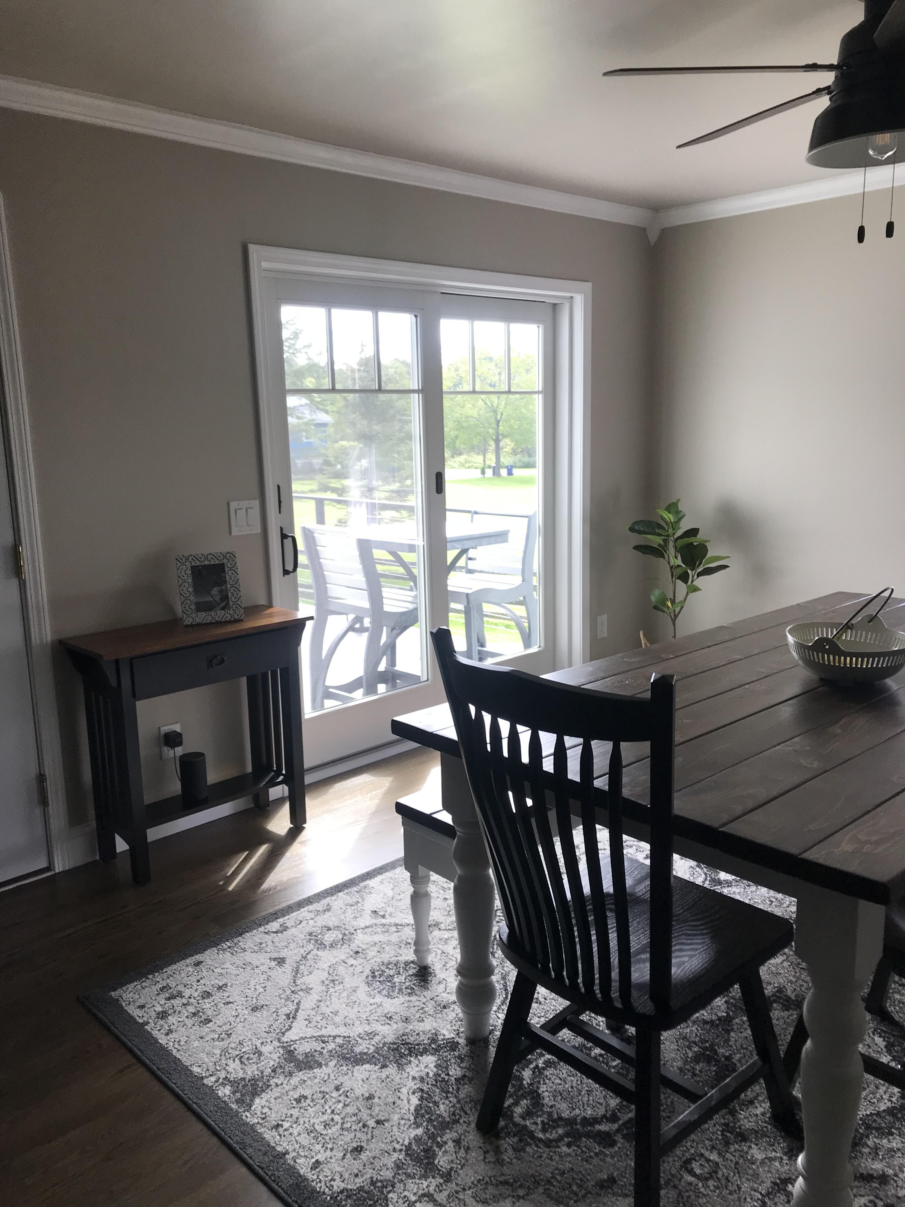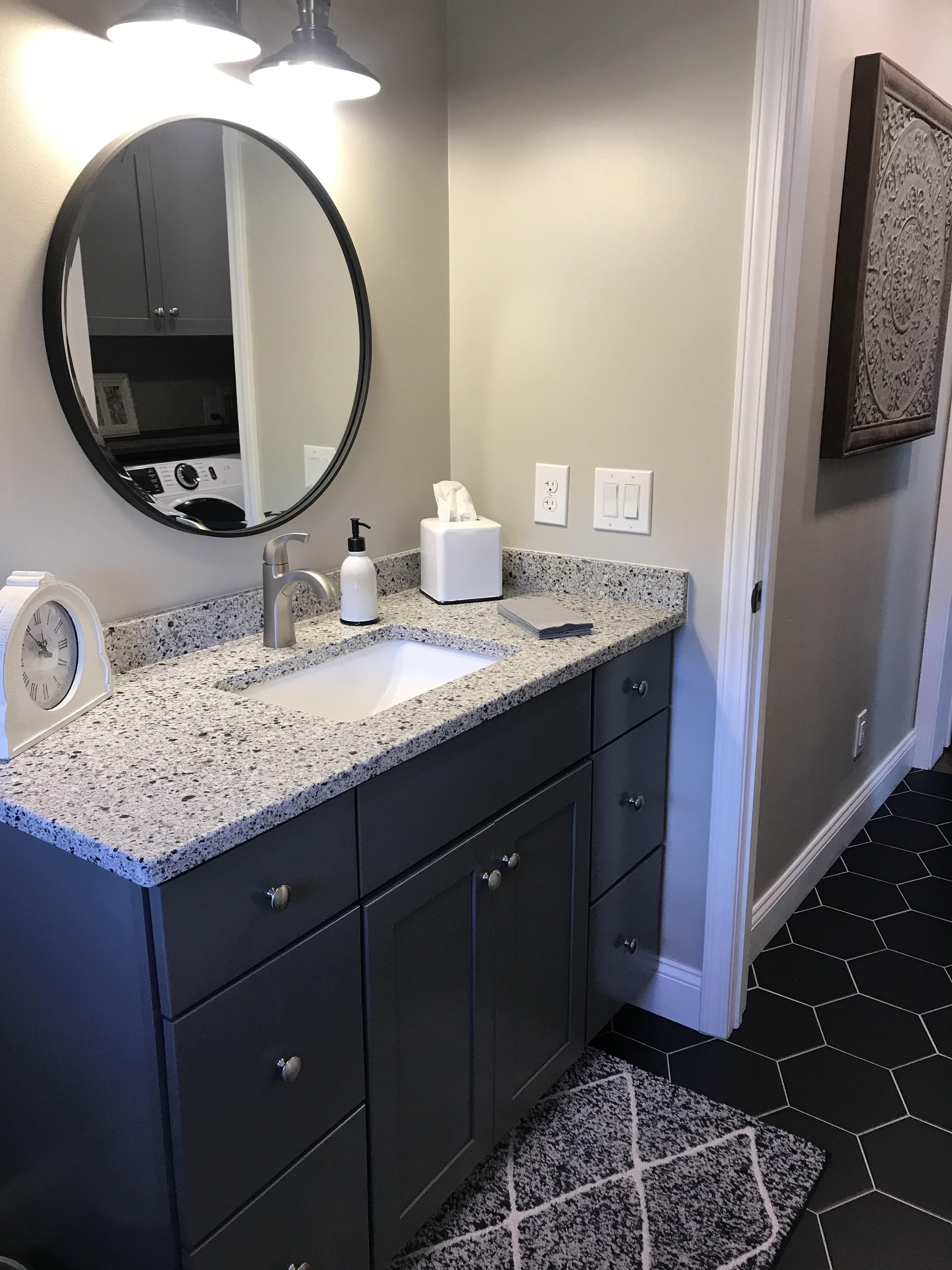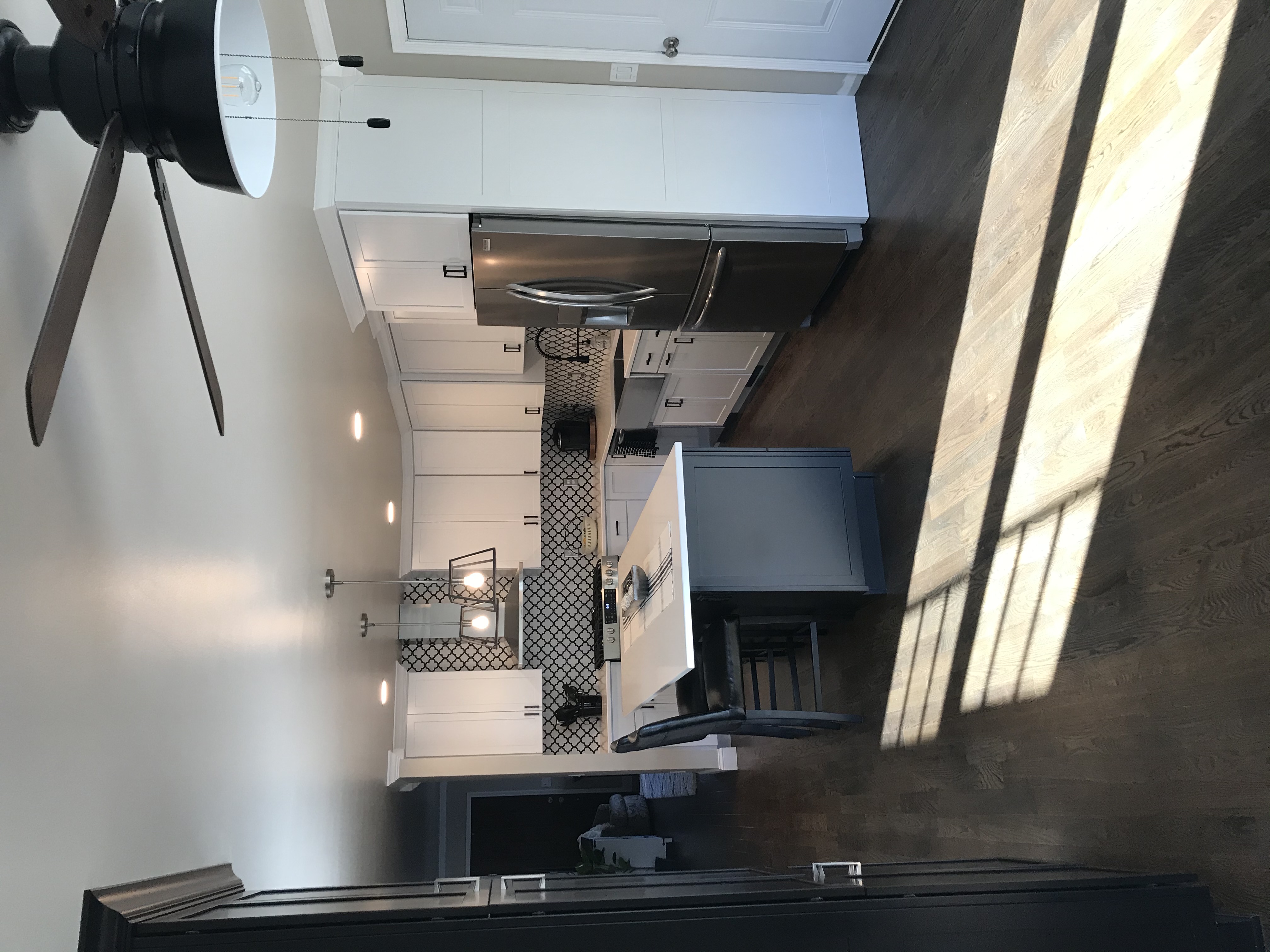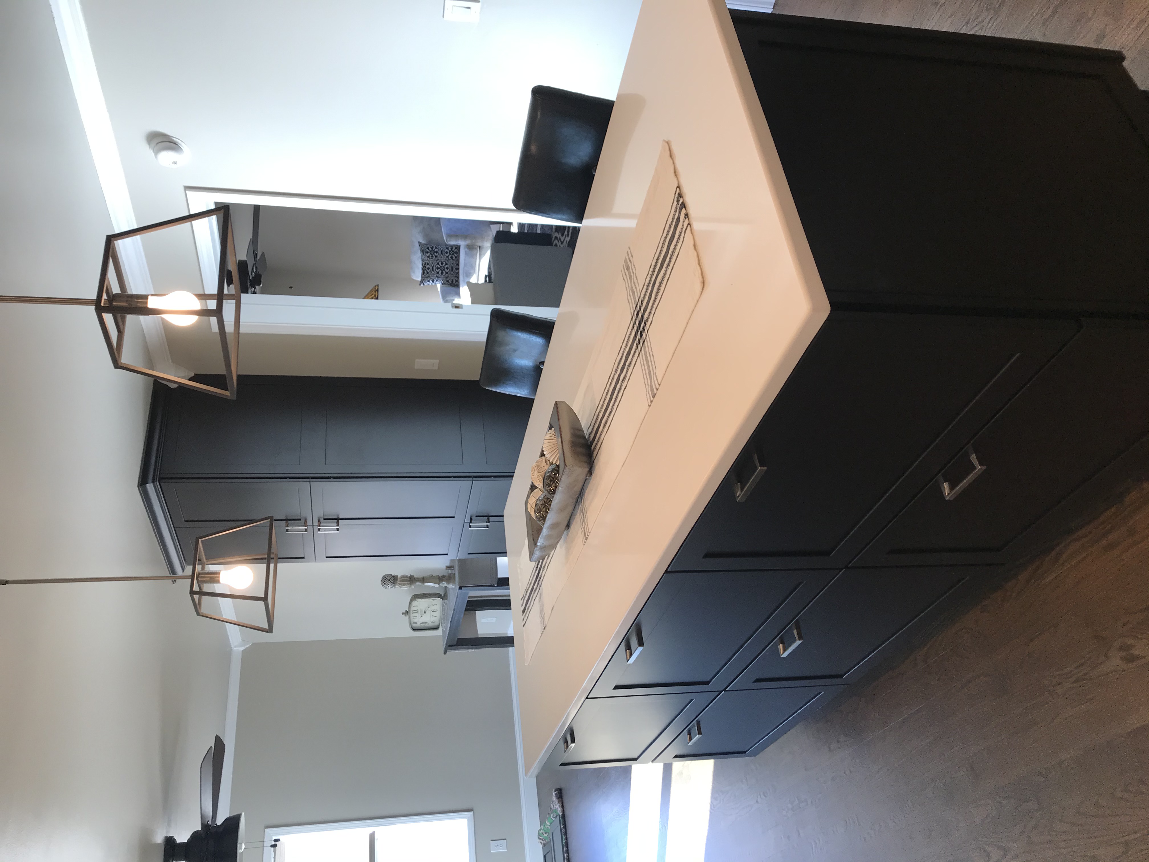 This was a total kitchen remodel. We removed the existing cabinets, reconfigured lighting, repaired damaged drywall, and then installed Kraftmaid cabinets.