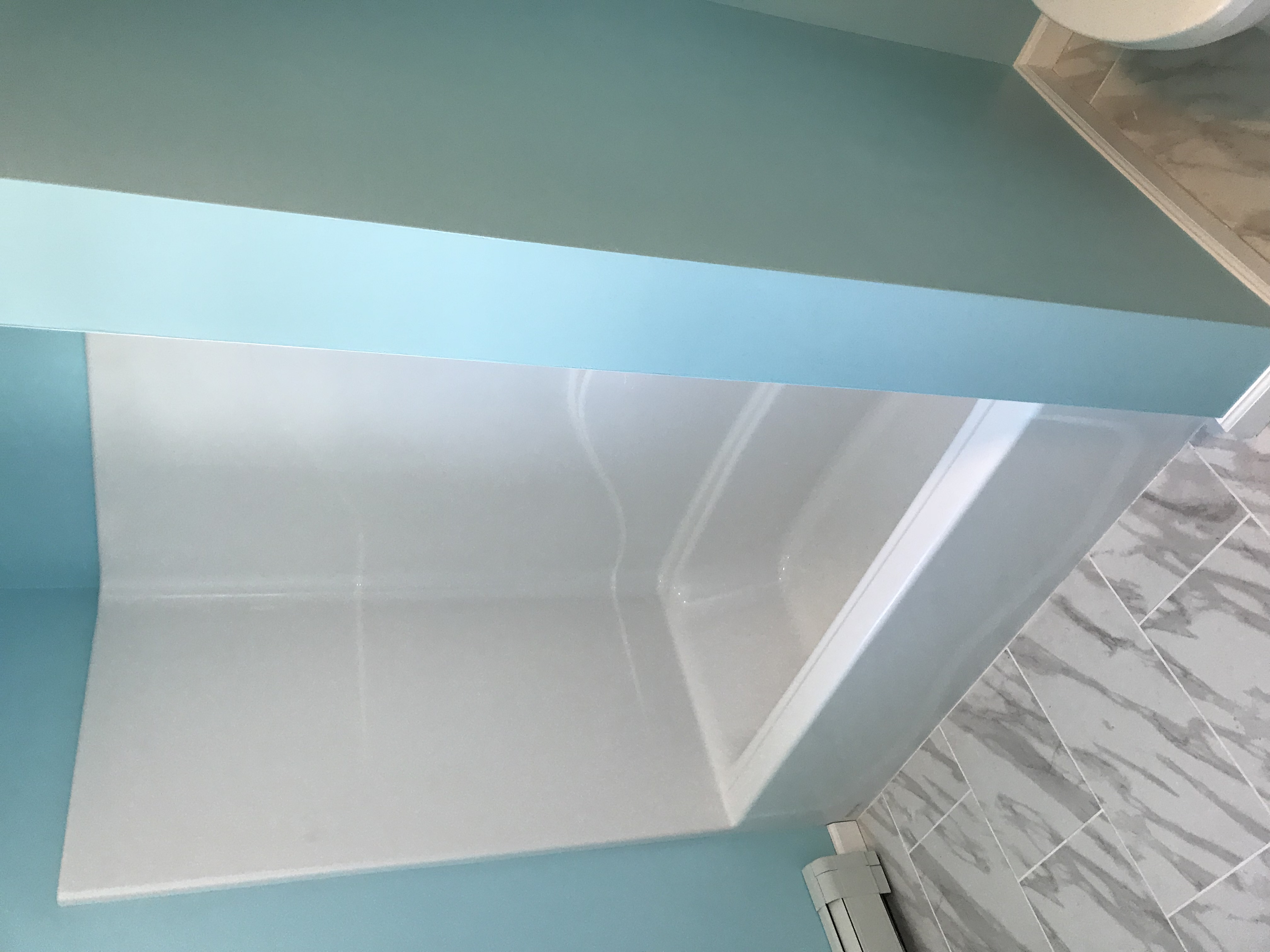 This bathroom was part of a complete tear down & rebuild project. Even though the space was small we were able to install a custom vanity.
